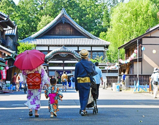開園時間を延長し、夏の夕べの過ごし方を体感できるイベント「下町夕涼み」。毎年多くの方で賑わい、今年で20 回目を迎えます。園内の「下町中通り」では、提灯や建物のあかりがともる復元建造物の商店が下町の夏の風情を感じさせます。伝統的な日本の民家では、夕べの涼やかな風を感じながら過ごしていただけます。