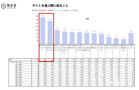 ギフト選びの悩みは「相手の好みが分からない」「何を贈れば喜ばれるか分からない」が2トップ。