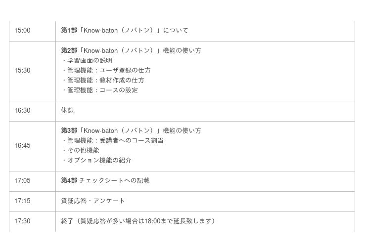 システム概要から具体的な操作方法まで、企業内研修用(商用利用不可)サービス「Know-baton(ノバトン)体験セミナー」 ~導入をご検討中のお客様向け~