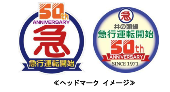 京王電鉄株式会社(本社:東京都多摩市、取締役社長:紅村 康)では、京王井の頭線が急行運転を開始して2021年12月に50周年を迎えたことを記念し、「井の頭線急行運転開始50周年記念乗車券」を数量限定で発売するほか、記念ヘッドマークを付けた車両の運行ならびに富士見ヶ丘車両基地においてヘッドマーク付き車両の展示撮影会を実施します。