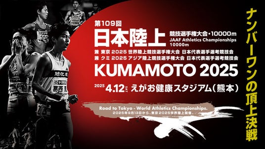 2025年4月12日(土)に、「第109回日本陸上競技選手権大会・10000m」を熊本県熊本市・えがお健康スタジアムで開催いたします。