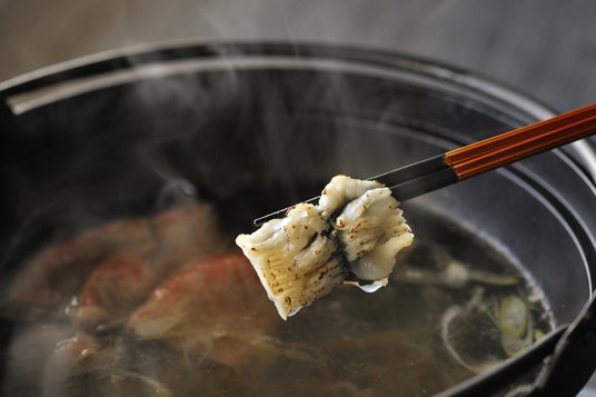 天竜川の上流である、長野県の諏訪湖では古くから鰻がよく獲れ、多く食されてきました。鰻には120本以上の骨があるため、親しみのある蒲焼ではなく、鰻の骨を丁寧に切る「骨切り」をします。そして丁寧に骨切りした鰻を鍋で提供することで、新たな鰻の味わいを楽しむことが出来る料理を考案しました。また、長野県で長く食されてきた鰻に、北アルプスの豊かな伏流水によって栽培された沢山葵をあわせることで、長野の清らかな水の中で育った食材同士が一つの鍋にて出会います。新たな調理法で、長野の広大な山々からの恵みを感じて欲しいという想いから、料理の考案に至りました。