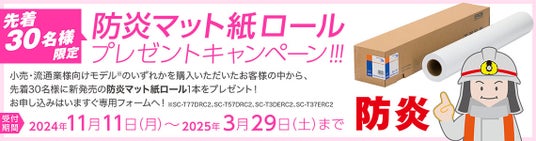 さらに、キャンペーン期間中、小売・流通業向けの対象セットモデルをご購入いただいたお客様には、先着30名様限定で「防炎マット紙ロール」1本をプレゼントします(注3)