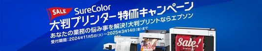 エプソン販売株式会社は、業種別にお得なセットモデルをご用意した『SureColor大判プリンター特価キャンペーン~あなたの業務の悩み事を解決!大判プリントならエプソン~』を2024年11月5日より開始します。