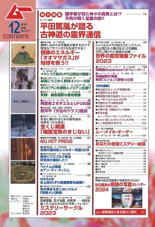 株式会社 ワン・パブリッシング(東京都台東区/代表取締役社長:廣瀬有二)は、2023年11月9日(木)に月刊「ムー」12月号(特別定価:1060円(税込))を発売いたしました。月刊「ムー」は世界の謎と不思議に挑戦するスーパーミステリー・マガジンです。