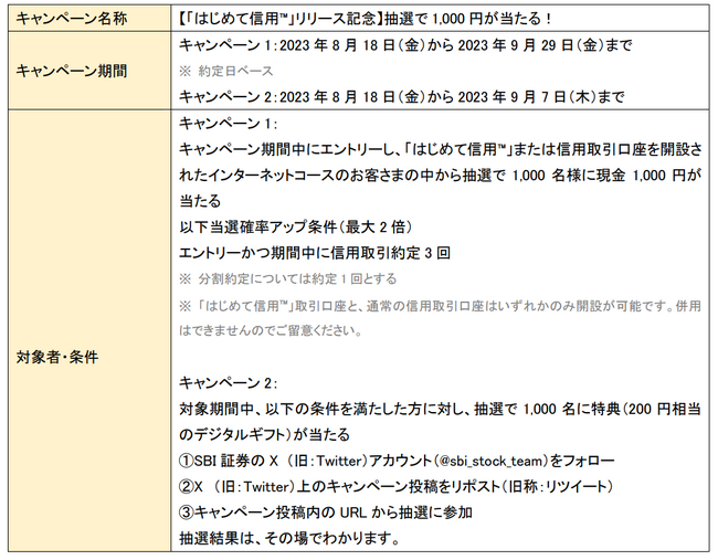 株式会社 SBI 証券(本社:東京都港区、代表取締役社長:高村正人、以下「当社」)は、2023 年 8月 18日(金)から、株式の取引経験がない方でもリスクを抑えて信用取引ができる「はじめて信用(TM)」を提供することになりましたので、お知らせします。株式の取引経験がない方でも、「はじめて信用(TM)」取引口座の所定の審査を通過されると、売建(空売り)ができることを含めて信用取引のメリットを享受できるサービスは、主要ネット証券初※となります。