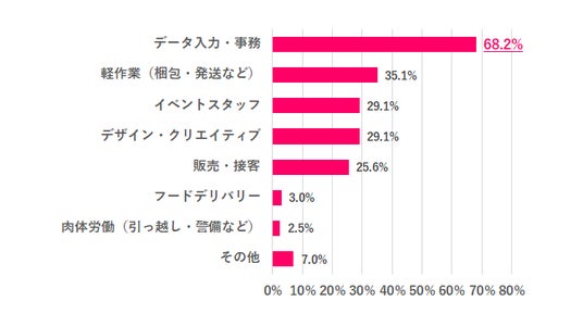 「その他」には、「オンラインモニター」「皿洗い」「草むしり」など専門的な知識・スキルがなくともできる作業、「介護」「保育」といった資格や特技が活かしやすい仕事など多彩な回答が集まりました。
