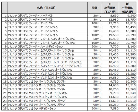 〈ナルシソ ロドリゲス パルファム〉は、香水原料及び包装材料の高騰により、一部商品の価格を2024年2月1日(木)より改定させていただきます。今後も大切なお客さまに、より一層ご満足いただける商品をご提供できるように努めてまいります。何卒ご理解いただくとともに、今後ともご愛顧を賜りますようお願い申し上げます。