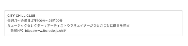 アーティストやクリエイターがひと月ごとに曜日担当し、「CHILL」(癒し・すばらしい・かっこいい)をコンセプトに2時間のミュージックプレイリストを作成しOAするプログラム「CITY CHILL CLUB」(月曜~金曜 27時~29時放送)の1月31日までの1月度ミュージックセレクターが決定しました。