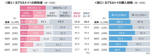 20~30代は、興味度も購入経験も高い。<図1・図2>