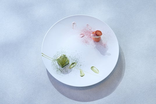 テリーヌのように濃厚な抹茶の羊羹にさっぱり香る緑茶の泡を合わせ、だんだんと春めく木々の様子を表現しました。さっぱりとした甘さの白いちごにバニラ香る濃厚マスカルポーネをのせ、抹茶や緑茶の苦みといちごやバニラの香りをお愉しみいただけるスイーツに仕上げました。