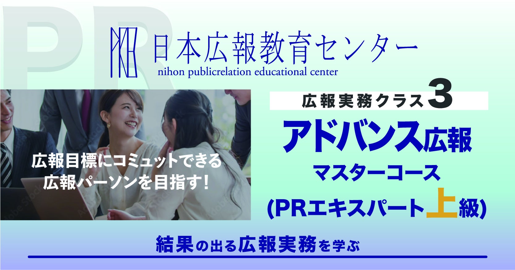 広報の成果に満足していますか?「このままでは頭打ちになるのではないか」「もっと質の高い成果を出したい」と感じていませんか?日本広報教育センター「アドバンス広報マスター~広報応用スキル」で結果を出そう!
