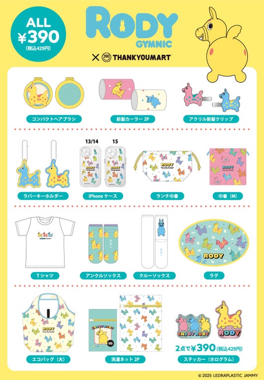 「Be Smile, Be Kawaii」をテーマに、キャラクターの限定アイテムを中心としたカワイイ推しグッズがいつ来てもALL390円で手に入るショップ「サンキューマート」は、イタリアで馬をモチーフに生まれた世界一cuteなバランスボール「RODY(ロディ)」とのコラボレーション雑貨を、全国のサンキューマート店舗で5月上旬より入荷次第販売開始いたします。