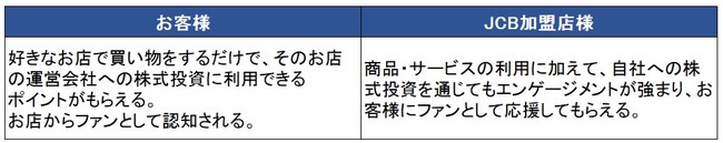 株式会社ジェーシービー(本社:東京都港区、代表取締役会長兼執行役員社長: 浜川一郎、以下「JCB」)とマネックス証券株式会社(本社:東京都港区、代表取締役社長:清明祐子、以下「マネックス証券」)は、カードでのお買い物により貯まったポイントでJCBカード加盟店の株式に投資をする「株式投資体験」と、加盟店の「お客様のファン化」を支援するロイヤルティプログラムサービス『タネカブ(TM)』(以下「本サービス」)の実現を目指し、2022年8月3日(水)付で業務提携に関する基本合意書(以下「本合意書」)を締結しましたので、お知らせいたします。