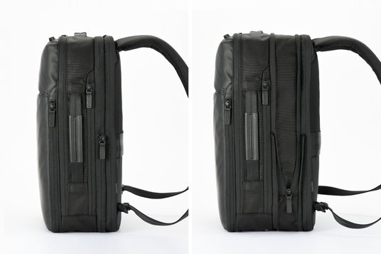 ファスナーを開くことで、マチ幅を広げて容量を増やせる「エキスパンダブル」機能。