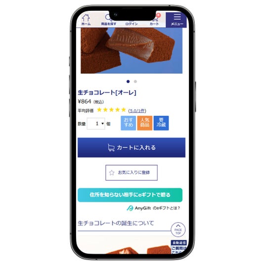 1.「eギフトで贈る」を選択「eギフト」カテゴリページや商品ページにて「住所を知らない相手にeギフトで贈る」を選択するとeギフトをご利用いただけます。