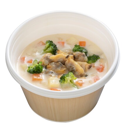 【内容】スープは牛乳をベースにあさりの煮汁やマッシュポテトなどを加え、「貝の旨み」「ミルクの濃厚感」をダイレクトに感じられる仕立てにしました。具材にはあさり・じゃがいも・人参・玉ねぎ・ブロッコリーを使用し、満足感ある一品です。