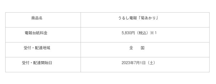 ※1 別途、電報(メッセージ)料等が必要です。詳細は以下URLにてご確認ください。