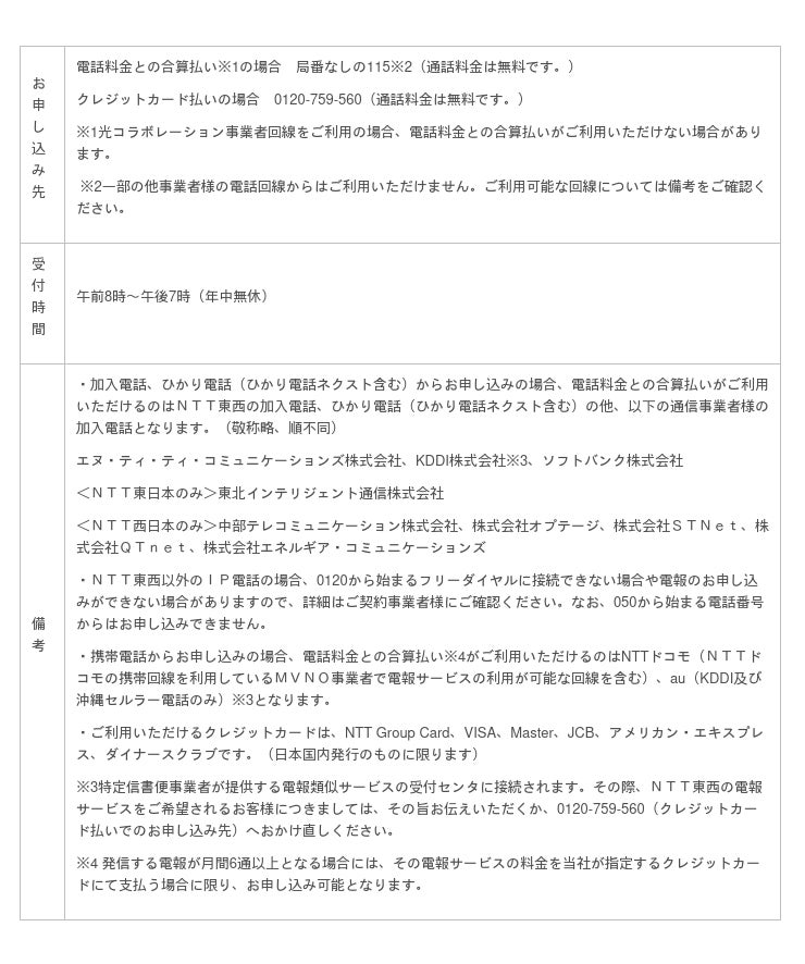 ※4 一部の他事業者様の電話回線からはご利用いただけません。詳細は別添「電報のお申し込み方法について」をご参照ください。