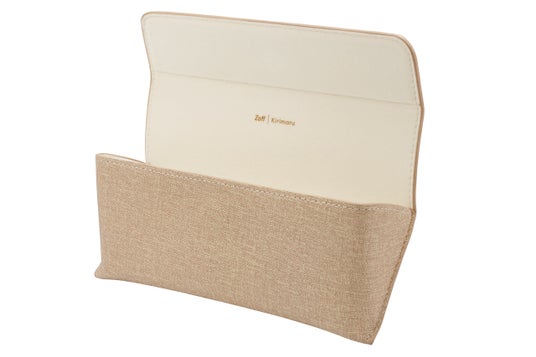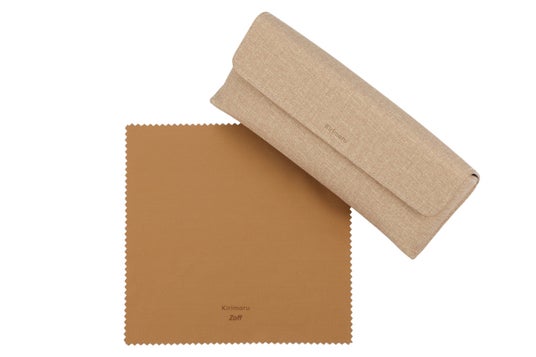 きりまるセレクトのナチュラルカラーがかわいい、コンパクトなケースとメガネ拭き付き。