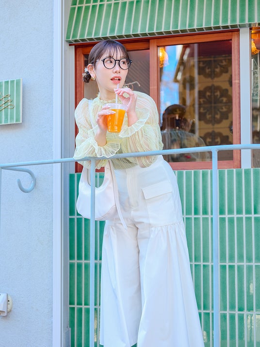 『ちょっと物足りないコーデも、カジュアルすぎずキュートに仕上げてくれるよ!プラスチックとメタルの組み合わせは、オシャレさと華やかさの良いところどりで軽くて掛けやすいのにしっかりおしゃれに見せてくれます!横を向くとちらっとメタルが見えるのもおしゃれポイント!』