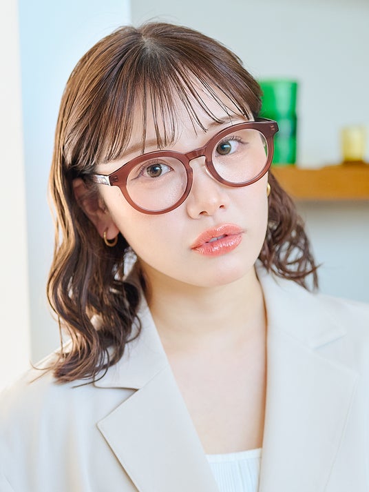 コーデの主役になるようなボリュームあるデザイン。まるめのデザインにすることで、さりげない可愛らしさをプラス。おしゃれさん・メガネ上級者にもおすすめ。