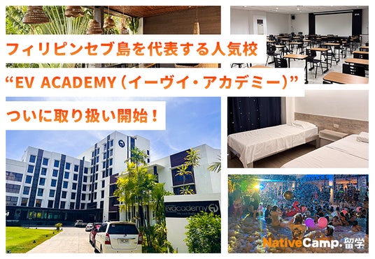 ネイティブスピーカーと回数無制限のオンライン英会話サービス「ネイティブキャンプ英会話」を展開する株式会社ネイティブキャンプ(東京都渋谷区 代表取締役: 谷川国洋)は、海外留学エージェントサービス「ネイティブキャンプ留学」において、フィリピン・セブ島を代表する人気校「EV ACADEMY(イーヴイ・アカデミー)」の取り扱いを開始したことをお知らせします。