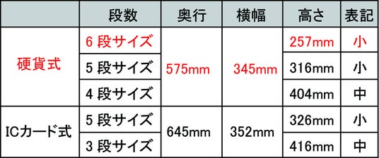 サイズ規定/品番/外寸サイズ(H×W×D)/重量/容量/税込価格: