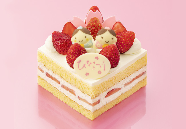 しっとりやわらかなスポンジとミルク香るクリームの中には、食べやすくスライスした苺をサンド。優しい味わいのクリームから、ジューシーな苺の甘酸っぱさがあふれます。さらにチョコパーツと苺をひな壇のイメージで飾り付けて、仲良く寄り添うお内裏さまとお雛さまで「お子様がすくすく成長しますように」と願いを込めました。