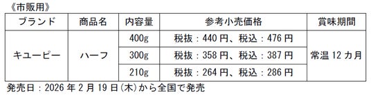 キユーピー株式会社(本社:東京都渋谷区、代表取締役 社長執行役員:高宮 満、以下キユーピー)は、キユーピー マヨネーズに比べてカロリーが50%カットの「キユーピーハーフ」の大幅リニューアルを行い、市販用は2026年2月19日(木)、業務用は同年2月6日(金)から全国で発売します。市販用と業務用のいずれも、キユーピー マヨネーズと同様の「卵黄タイプ」に変更し、“卵黄ならではのコクとうま味”を実現しました。