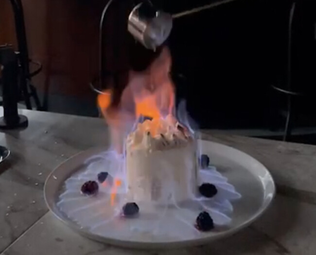 妖艶な炎を上げて仕上げるアイスケーキ「ベイクド・アラスカ」がこの冬登場!