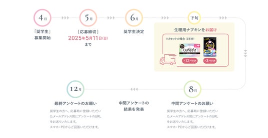 【応募方法】 下記「奨学ナプキン」特設サイト内の応募フォームから生理に関する10問程度の質問に回答し、応募
