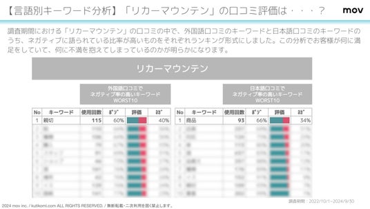 - 口コミ分析対象期間:2022年10月1日 ~ 2024年9月30日