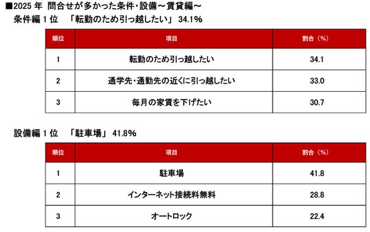 <不動産のプロに聞いた!「2025年 問合せが多かった条件・設備~賃貸編~」ランキング調査結果>