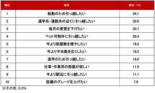 ~条件編1位 「転勤のため引っ越したい」 34.1%~