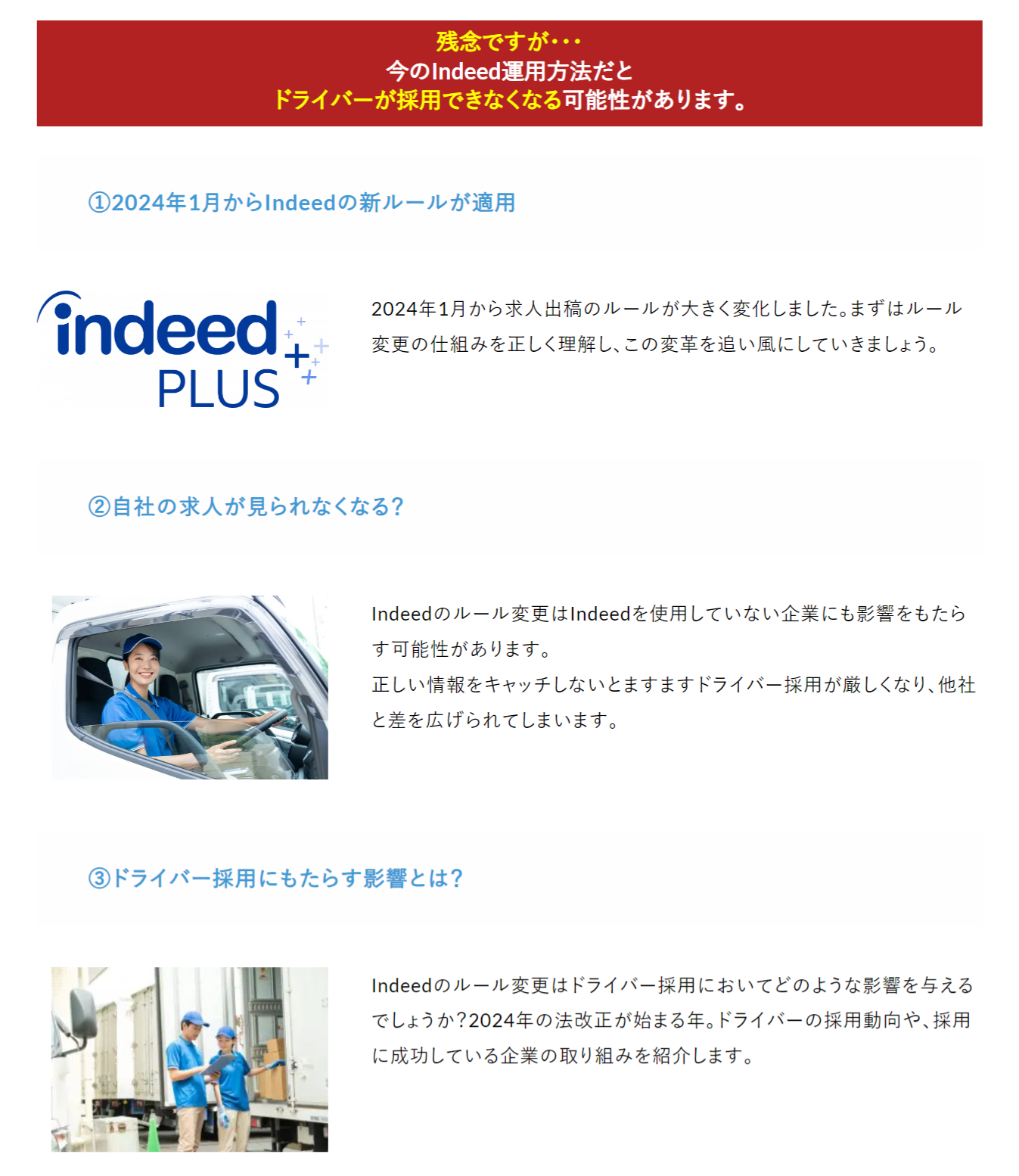 - Indeedのルール変更がドライバー採用にもたらす影響