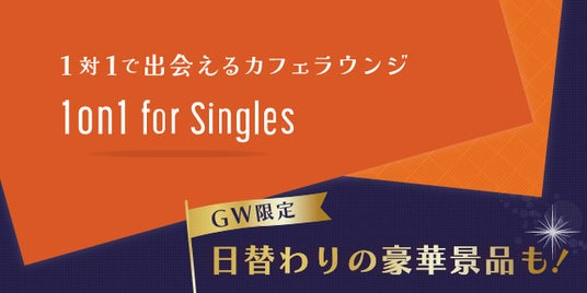 株式会社リンクバル(本社:東京都中央区、代表取締役社長:吉弘和正、以下「リンクバル」)が運営する、1対1で出会えるカフェラウンジ『1on1 for Singles(ワンオンワン フォーシングルス)』は、2024年4月27日(土)~5月6日(月)の期間中に1on1(1対1の会話)利用料金の40%割引や、日替わりで豪華景品が抽選で当たる「GWキャンペーン」を開催いたします。また、総額1万円分のギフト券が当たる「GWスペシャルBINGO」も実施いたします。
