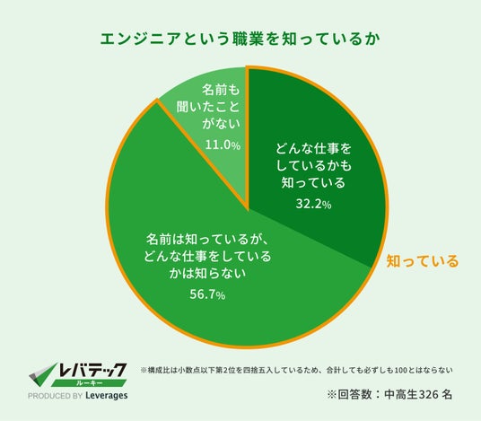 エンジニアという職業について、全体の56.7%が「名前は知っているが、どんな仕事をしているかは知らない」と回答しました。