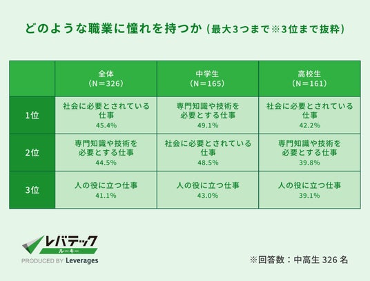レバテック株式会社が運営する、ITエンジニア専門新卒向け就職支援エージェント、 レバテックルーキー( https://rookie.levtech.jp/ )は、中高生326人を対象に、エンジニア職に関するイメージ調査を実施しました。