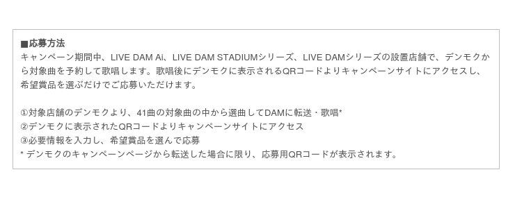 対象店舗:全国のLIVE DAM Ai、LIVE DAM STADIUMシリーズ、LIVE DAMシリーズ設置店舗