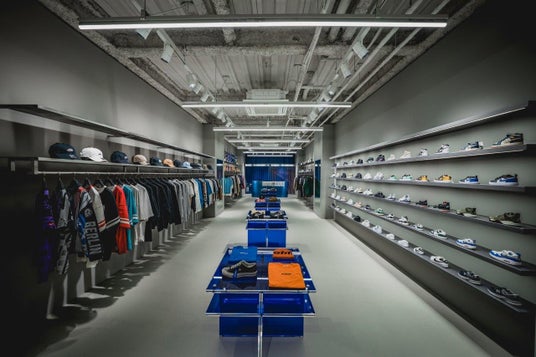 atmosのブランドカラーであるブルーマテリアルが随所に施された、atmos心斎橋店の新しい空間にぜひご注目ください。