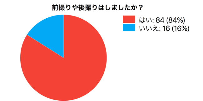 「Q1.前撮りや後撮りはしましたか?」という質問では、「はい」が84%、「いいえ」が16%という結果になりました。