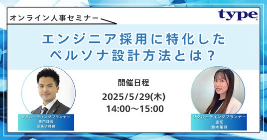 転職サイト「type」では、5月29日(木)に「エンジニア採用に特化したペルソナ設計方法とは?」を開催いたします。
