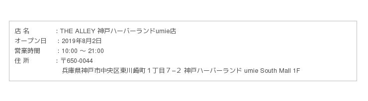 台湾・アジアを中心にグローバルに展開する本格派ティースタンド「THE ALLEY(ジ アレイ)」(http://www.the-alley.jp/)は、8/2(金)神戸ハーバーランドumieに新店をオープン致します。
