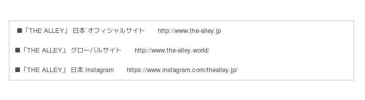 「THE ALLEY」は、2017年7月にサナギ新宿にて日本初上陸。