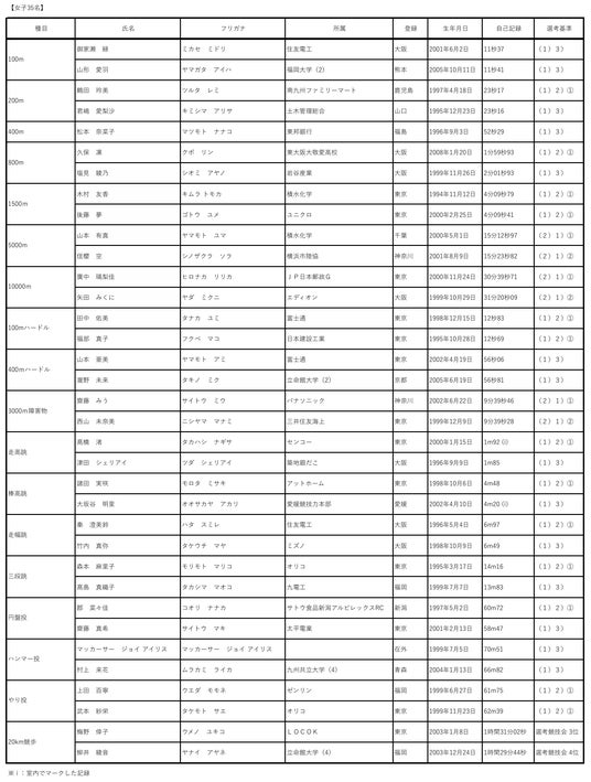 ▼出場選手発表第2弾:男子3000m障害物、女子1500m