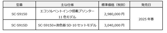 エプソン販売株式会社は、エコソルベントインク搭載プリンターの新商品『SC-S9150』を2025年春に発売します。