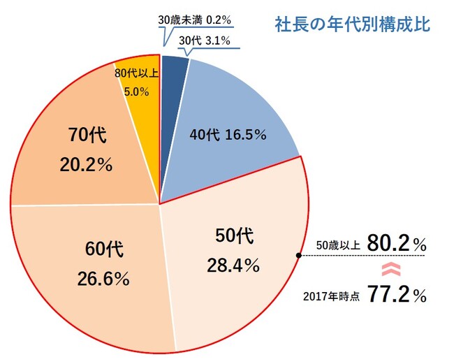 <年代別構成比> 「50歳以上」の社長が8割超、5年間で3.0pt上昇