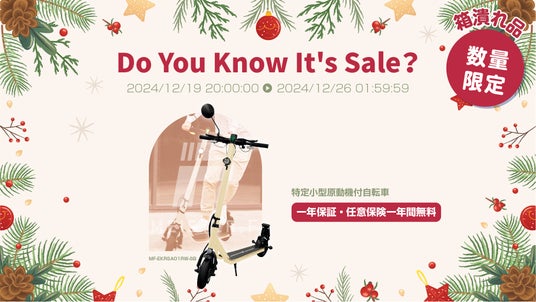 楽天市場「Show !t」クリスマスセール開催中!箱潰れの特定小型電動キックボード、電動バランススクーターetcを特別価格でご提供。箱潰れ品は、箱破損しておりますが、中身は新品ですのでお安く購入するチャンスです。このチャンスをお見逃しなく!セール期間:12月19日(木)20:00~12月26日(水)01:59