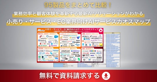 AIポータルメディア「AIsmiley」を運営する株式会社アイスマイリー(東京都渋谷区、代表取締役:板羽 晃司)は、業務効率と顧客体験を革新する最新AIソリューションをまとめた「小売り・サービス・EC業界向けAIサービスカオスマップ」を、2025年11月17日(月)に公開しました。掲載総数は95製品です。